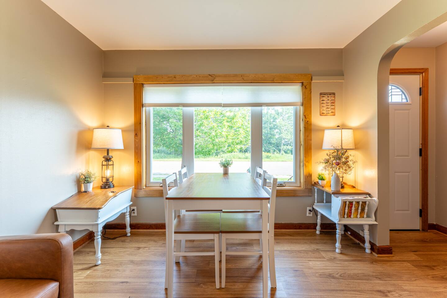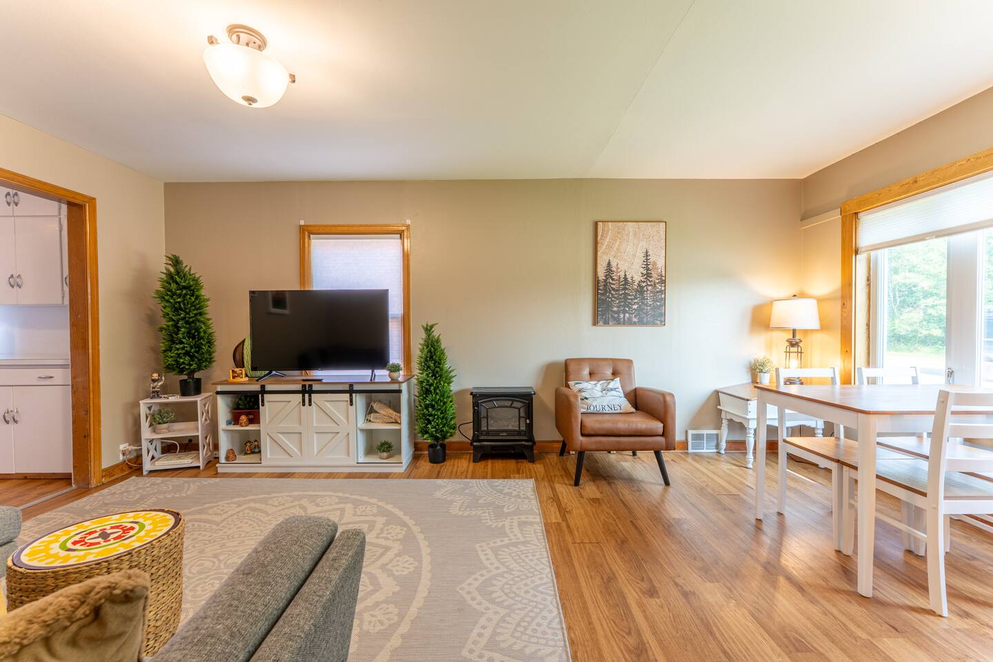 Home Highlights Queen Bedroom: One spacious room with a comfortable queen-sized bed—perfect for restful nights. Twin Bedroom: A cozy second bedroom with two twin beds, ideal for children, friends, or extra guests. Full Bathroom: Bright and conveniently located for your comfort and practicality. Fully Equipped Kitchen: Ready for everything from coffee at sunrise to preparing home-cooked meals. Open Living Area: Relax with an electric fireplace, smart TV, and room to gather after trail adventures. Pet Friendly: Furry companions are welcome—please review our pet policy when booking. EV Charging: On-site electric vehicle charging is available for guests who travel green. Outdoor Amenities Deck with Grill: Enjoy meals outside or unwind after a day exploring. Fire Pit: Perfect for stargazing and toasting marshmallows in true Northwoods style. Private Parking: Drive up and unload with ease; no downtown hassle. Location Perks Situated on quiet Camp Street, you’ll find yourself: Just minutes from downtown Ely’s attractions, restaurants, and local shops. Near trailheads, museums, and easy access to the Boundary Waters Canoe Area. Close to grocery stores, outfitters, and all essentials.