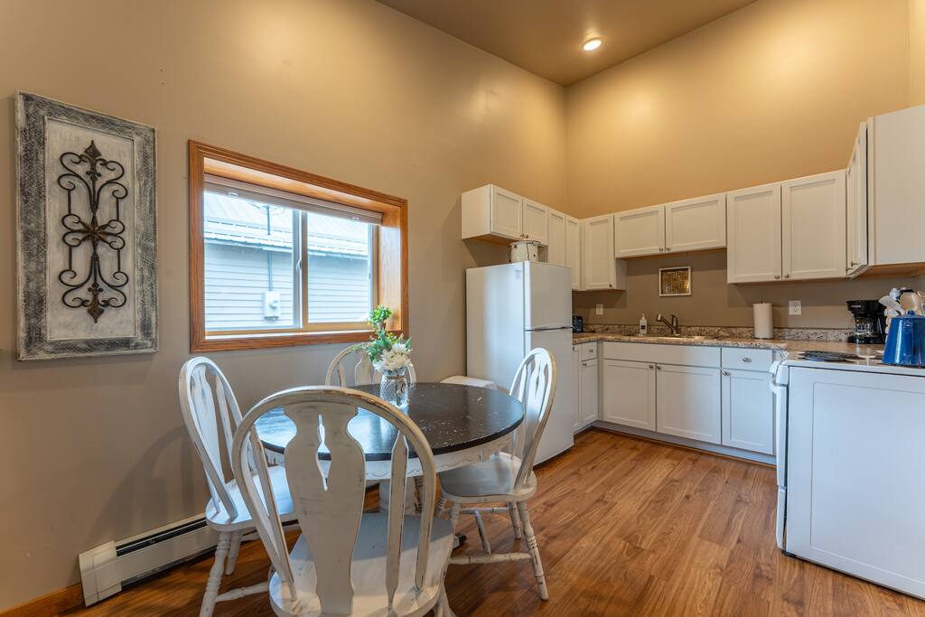 This ground level studio apartment loft sits in the heart of Ely. You are a 2 minute walk from our the heart of Ely's downtown with shops, coffee, restaurants/bars, art and more. Our studio apartment comfortably sleeps two guests with a king bed, full kitchen and one full bath. The apartment was recently renovated and is clean and comfortable. We have everything you need to make your stay in Ely a wonderful time. There is off street parking in the back with a very easy entrance!