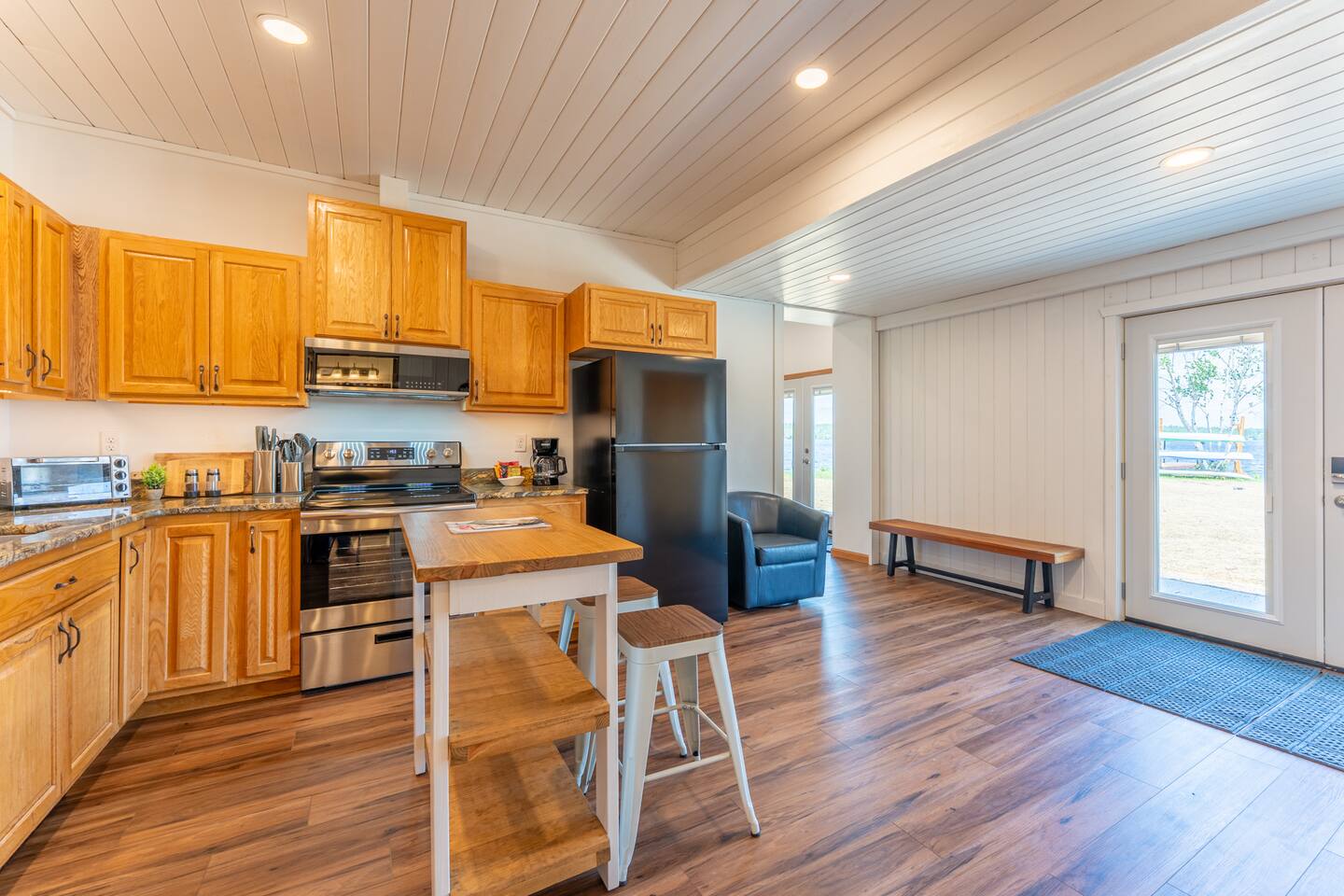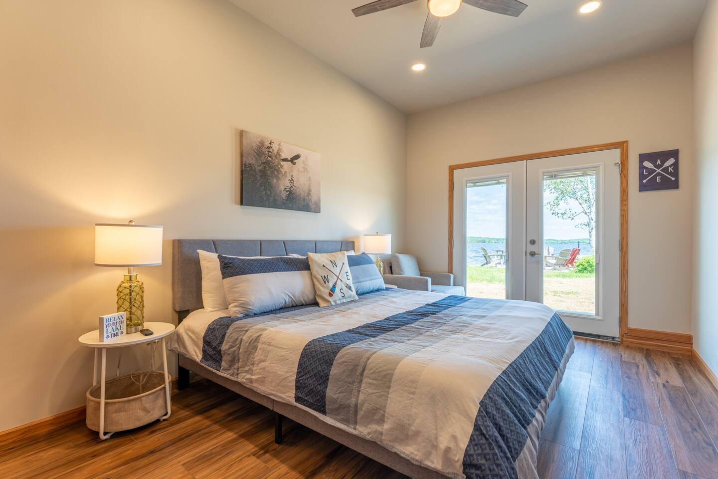 Experience the best of Ely in Lakeview Haven, a beautifully remodeled 2-bedroom unit perfectly positioned on the scenic point next to Grand Ely Lodge. Just a 15-minute walk from Ely’s vibrant downtown, you’ll have easy access to coffee shops, restaurants, bars, art galleries, parks, and more. This inviting retreat comfortably sleeps up to 7 guests, featuring a king bedroom and a spacious second bedroom with one queen bed and one twin bed. There is a sofa couch in the living room. Recently renovated, Lakeview Haven offers an open-concept kitchen and living area with new furnishings and expansive windows that frame breathtaking lake views from every angle. Step outside to relax on the patio and soak in the tranquil lakeside setting. Located just one block from Miner’s Lake and the Trezona Trail, you can rent a bike or bring your own to explore the area’s scenic paths. The property’s flat layout ensures easy access in all seasons, and the shared outdoor space is perfect for gathering with friends and family. After a day of adventure, unwind in the multi-unit sauna or gather around the grill for a lakeside meal. Highlights: Stunning lake views from all rooms Modern, northwoods-inspired décor Fully equipped kitchen with all essentials One full bathroom with double sink Private entrance and dedicated outdoor seating area Shared lakeside point with sauna, patio tables, grill, and Adirondack chairs Complimentary paddle boards and kayaks for guest use Fast WiFi, smart TV, and laundry facilities All linens, towels, and basic toiletries provided Ample on-site parking, including space for trailers Sleeping Arrangements: Bedroom 1: King bed Bedroom 2: Two queen beds Perfect For: Couples, families, or friends seeking a stylish, private lakeside escape with unbeatable access to both Ely’s downtown and the area’s best outdoor recreation. Why You’ll Love It: Lakeview Haven offers the ideal blend of privacy, comfort, and Northwoods adventure. Whether you’re paddling at sunrise, relaxing in the sauna, or strolling into town for dinner, you’ll enjoy the unique charm and convenience of this exceptional Ely retreat.